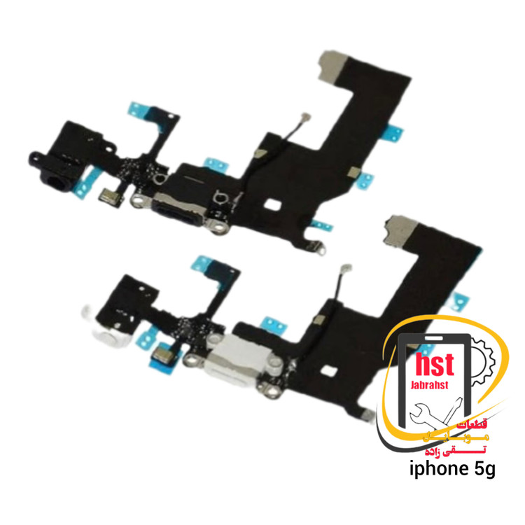 فلت شارژ آیفون 5 علاوه بر این که سوکت شارژ را به برد گوشی وصل می کند، دارای میکروفن (دهنی)، کانکتور دکمه هوم (Home)، پایه های اتصال اسپیکر پایینی (بازر – Buzer)، فلت آنتن و جک هندزفری نیز می باشد.