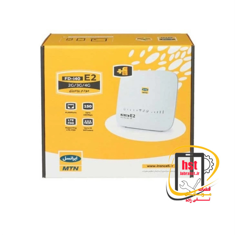 مودم « FD I40 E2» محصولی از شرکت «ایرانسل» است که در گروه مودمهای سیمکارتی قابلحمل و رومیزی قرار میگیرد. این مودم از نسلهای 3 و 4 اینترنت همراه پشتیبانی میکند که با آن میتوان سرعت خوبی را برای دانلود و آپلود تجربه کرد. سرعتی که شرکت تولیدکنندهی محصول برای انتقال اطلاعات توسط FD-I40 ارائه کرده، 150 مگابیت بر ثانیه است. در واقع این مودم وایرلس با استفاده از معتبرترین چیپستهای موجود در جهان تهیه شده و دارای آنتن دهی و سرعت مناسب (150مگ دانلود و 50 مگ آپلود) میباشد. این مودم شرکت ایرانسل برای راهاندازی تنها به یک سیمکارت ایرانسل نیاز دارد. همچنین 32 کاربر بصورت همزمان می توانند بصورت بی سیم به آن متصل شوند. علاوه بر آن در محلهایی که پوشش نسل چهارم تلفن همراه وجود ندارد دستگاه به طور اتوماتیک به شبکه نسل سوم و یا دوم متصل میگردد . این مودم 4 پورت LAN برای اتصال کابل شبکه دارد. در قسمت پشتی این مودم یک کلید WPS برای اتصال سریع و امن وجود دارد. در قسمت جلویی این محصول نیز چند نشان گر LED وجود دارد که می تواند اطلاعات دقیقی از وضعیت مودم و میزان آنتن دهی را ارائه کنند.