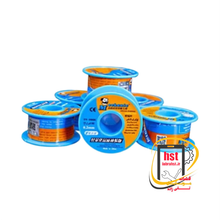 جهت لحیم کاری روی بردهای موبایل و انواع بردهای الکترونیکی با دقت بالا و ظریف کاری - سیم لحیم ۴۰ گرمی - قطر سیم ۰.۲ میلیمتر - آلیاژ ۶۳% قلع و ۳۷% سرب - CI (فلاکس) ۰.۰۵ درصد - فلاکس ۱.۰ - ۳.۰ درصد - Expansion : ۷۵%
