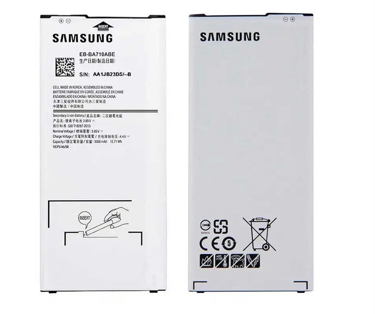 کمپانی سامسونگ درگوشی Samsung Galaxy A7 2016 از باتری لیتیوم یون (Lithium-ion) با کد فنی EB-BA710ABE استفاده کرده است. این باتری دارای ظرفیت ۳۳۰۰ میلیآمپر – ساعت و ولتاژ ۳/۸۵ ولت است.