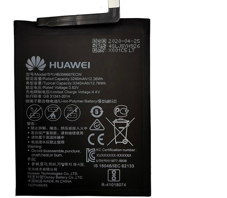 باتری Huawei mate 10 lite از نوع یون لیتیمبوده و میزان ولتاژ در نظر گرفته شده برای آن 3.82 ولت می باشد.