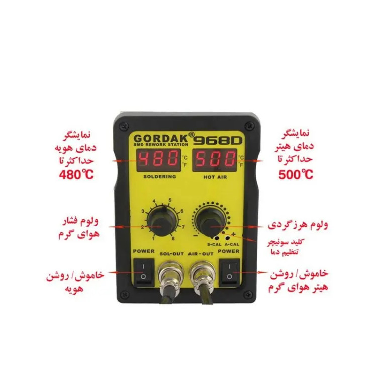 هیتر هوای گرم دو کاره دیجیتال جورداک (گرداگ) همزمان دارای هویه و هیتر دارای صفحه دیجیتال برای نمایش دمای هویه و باد خروجی هیتر قابلیت تنظیم دمای هیتر و هویه