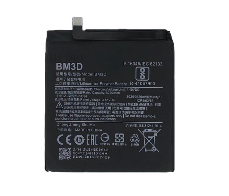 باطری گوشی شیائومی Mi 8 SE مدل BM3D محصولی از نوع پلیمر لیتیم بوده و دارای ظرفیتی برابر با 3120 میلی آمپر ساعت می باشد.