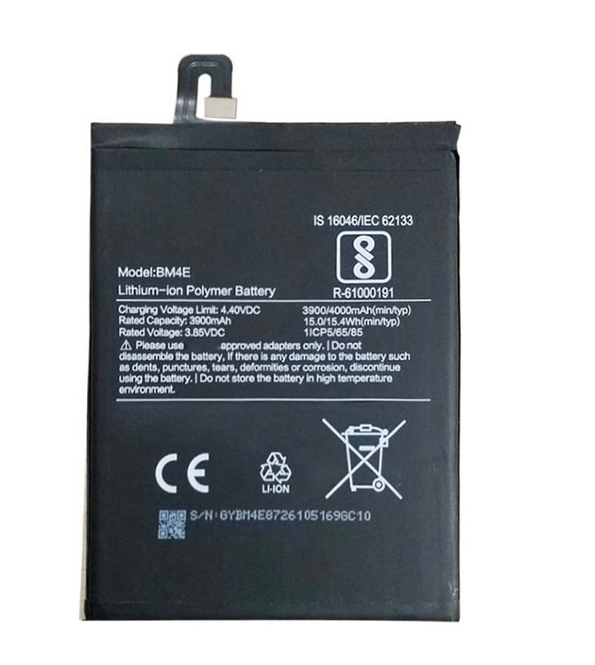 باطری گوشی شیائومی pocophone F1 محصولی از نوع پلیمر لیتیم بوده و دارای ظرفیتی برابر با 4000 میلی آمپر ساعت می باشد.