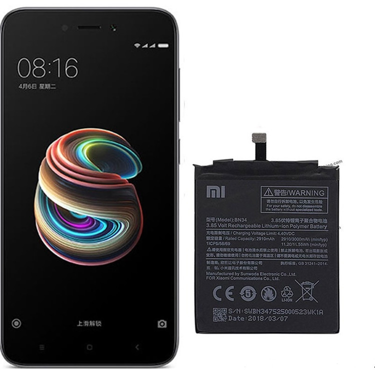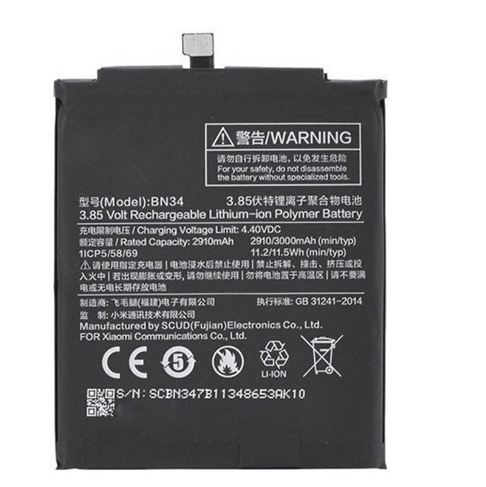 باطری گوشی شیائومی Redmi 5A مدل BN34 محصولی از نوع یون لیتیم بوده و دارای ظرفیتی برابر با 3000 میلی آمپر ساعت می باشد؛