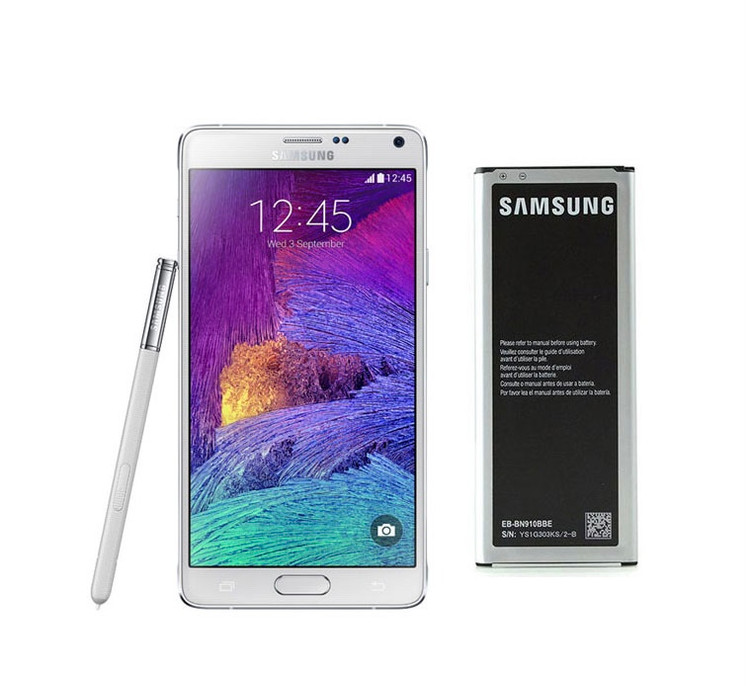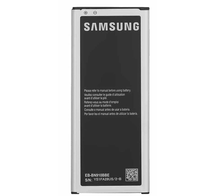 کمپانی سامسونگ درگوشی Samsung Galaxy Note 4 از باتری لیتیوم یون (Lithium-ion ) با کد فنی EB-BN910BBE استفاده کرده است. این باتری دارای ظرفیت ۳۲۲۰ میلیآمپر – ساعت و ولتاژ ۳/۸ ولت است.