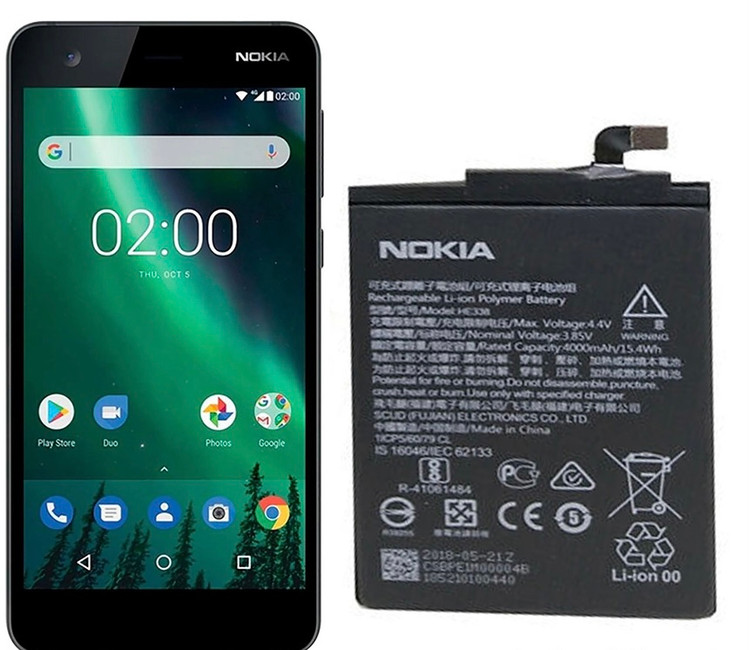 باتری اصلی گوشی نوکیا Nokia 2 از جنس یون لیتیم بوده و با ظرفیت 4100 میلی آمپر بر ساعت تولید شده است.