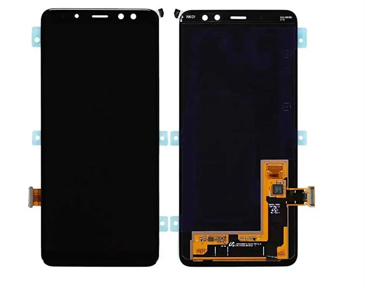 تاچ ال سی دی سامسونگ A8 2018 با اندازه 5.6 اینچ که پنل آن مطابق معمول Super AMOLED می باشد. رزولوشن این گوشی در مقایسه با سری گوشی های A سامسونگ کم تر شده و به 1080×2160 پیکسل رسیده است و تراکم پیکسلی آن 441ppi میباشد که نسبت به مدل قبلی آن یعنی تاچ ال سی دی سامسونگ A7 2017 تراکم پیکسلی بهتری دارد. الگوی قرار گیری پیکسل ها همان ماتریس شناخته شده ی Diamond Pentile سامسونگ می باشد که با چشم غیر مسلح قابل رویت نیست